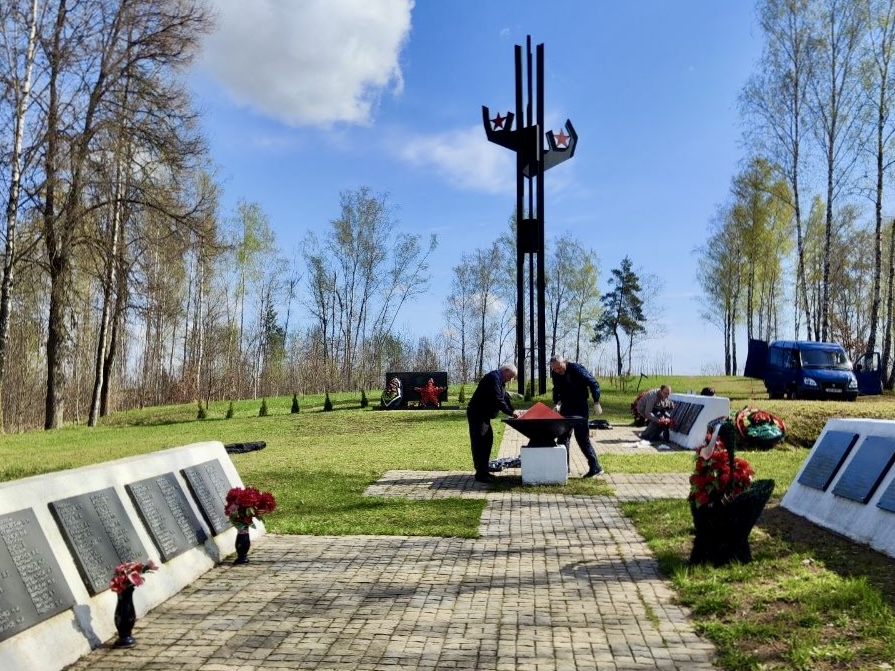 С особым вниманием и уважением работники университета провели работы по благоустройству территории мемориального комплекса в агрогородке Гатово, обновив внешний облик монумента и мемориальной доски с именами погибших в Великой Отечественной войне солдат.