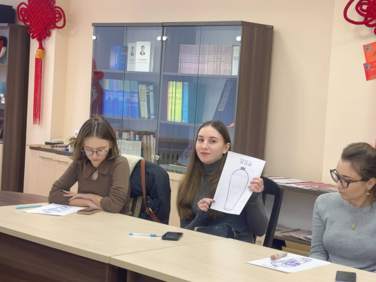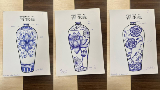 Преподаватель Хэ Бицзюань начала занятие с классической песни Джей Чжоу «Сине-белый фарфор», погрузив студентов в художественный мир этого искусства. В ходе мероприятия она рассказала о происхождении и развитии сине-белого фарфора, его формах, уделила особое внимание культурному значению и художественным особенностям орнаментов.